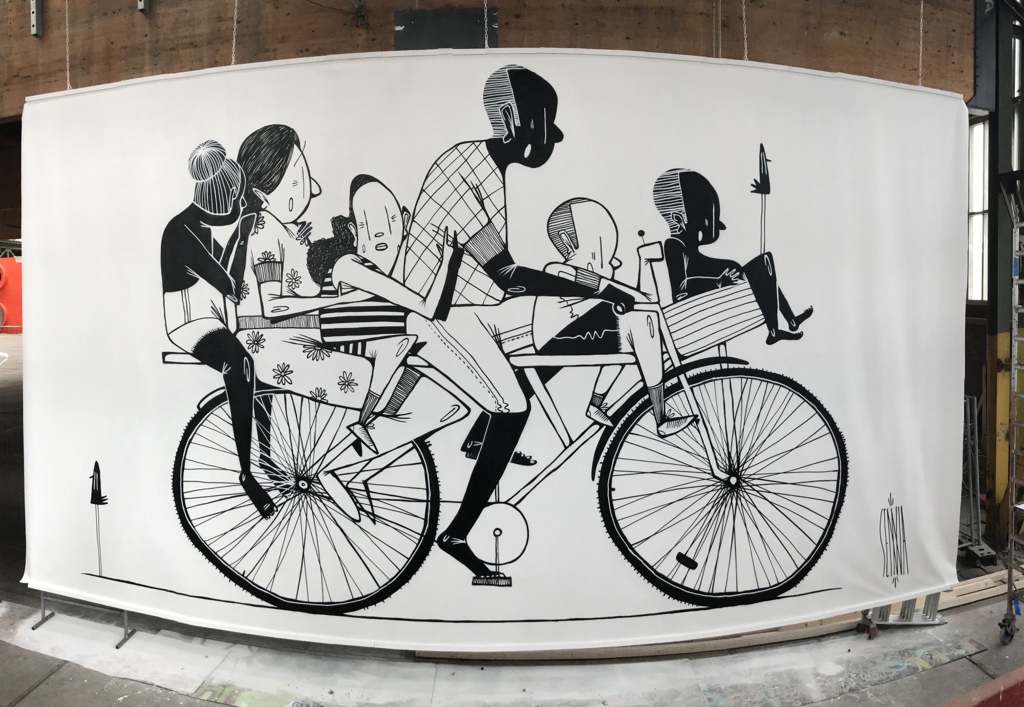 In Family on a bike, Alex portrays an affectionate scene on this popular Dutch mode of transport. Here the bicycle is also the universal element to illustrate the daily life of a multi-ethnic family. The cohabitation of people from different racial backgrounds is characteristic of contemporary Dutch society.