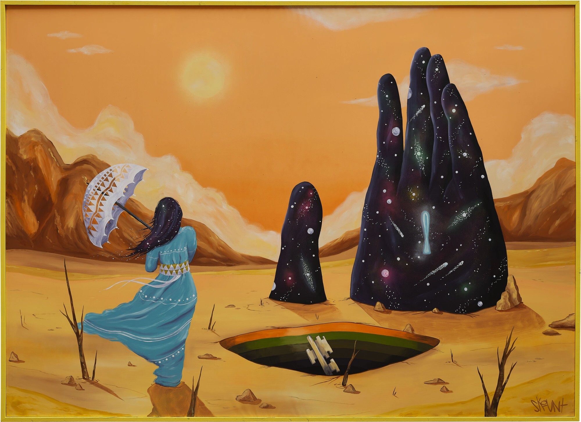 ( 2020 )Tijdens zijn jeugd werd Skount geteisterd door een terugkerende nachtmerrie waarin hij steeds verdwaald raakte in een woestijn. Dit tafereel inspireerde hem om te gaan schilderen, als reis naar zijn innerlijke universum.