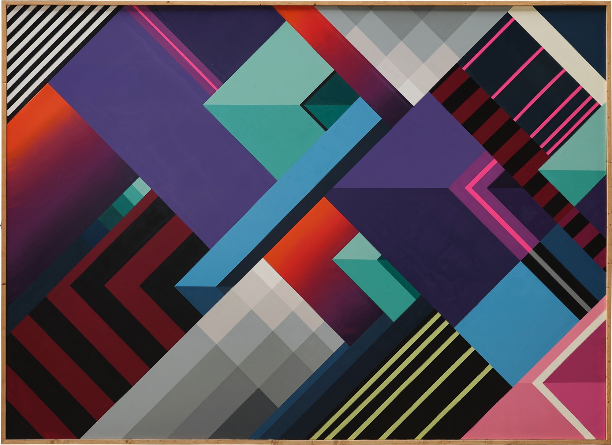 Dit kunstwerk maakt deel uit van de serie Untitled lines die graffitischrijver Nase heeft ontwikkeld tijdens zijn onafgebroken onderzoek naar nieuwe vormen. De composities van Nase ontstaan door onze leefomgeving te reduceren tot abstracte vormen. Dit stadsraster, dat alleen gebruikmaakt van de essentiƫle hoofdlijnen, is een weergave van woonblokken en glazen gebouwen die worden verlicht door neonverlichting.