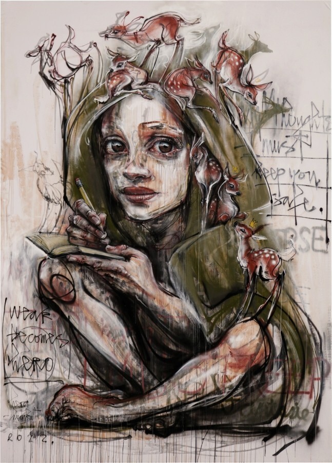 HERA van Herakut is een Duitse kunstenaar met roots in graffiti en street art sinds 2001. Naast schilderwerk maakt HERA installaties, doet ze kostuum- en set design voor dansgezelschappen en werkt ze als curator met een speciale focus op het ondersteunen van haar vrouwelijke collegaās. Daar waar mogelijk werkt ze samen met humanitaire organisaties aan kunstprogrammaās voor kinderen en kansarme jeugd.