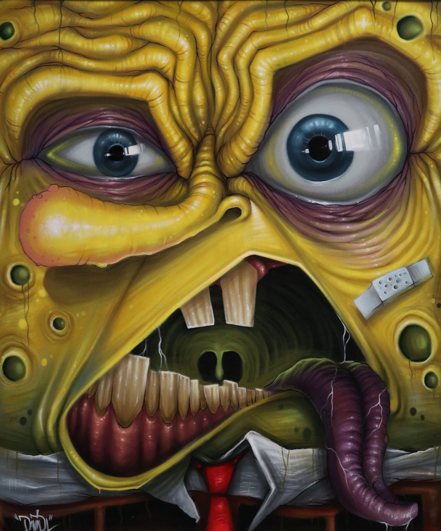 Bob is crazy! pays homage to SpongeBob SquarePants, from the eponymous American animated comedy series. Characters such as Homer Simpson, Super Mario and Tazmanian Devil also appear frequently in DavidL’s work.