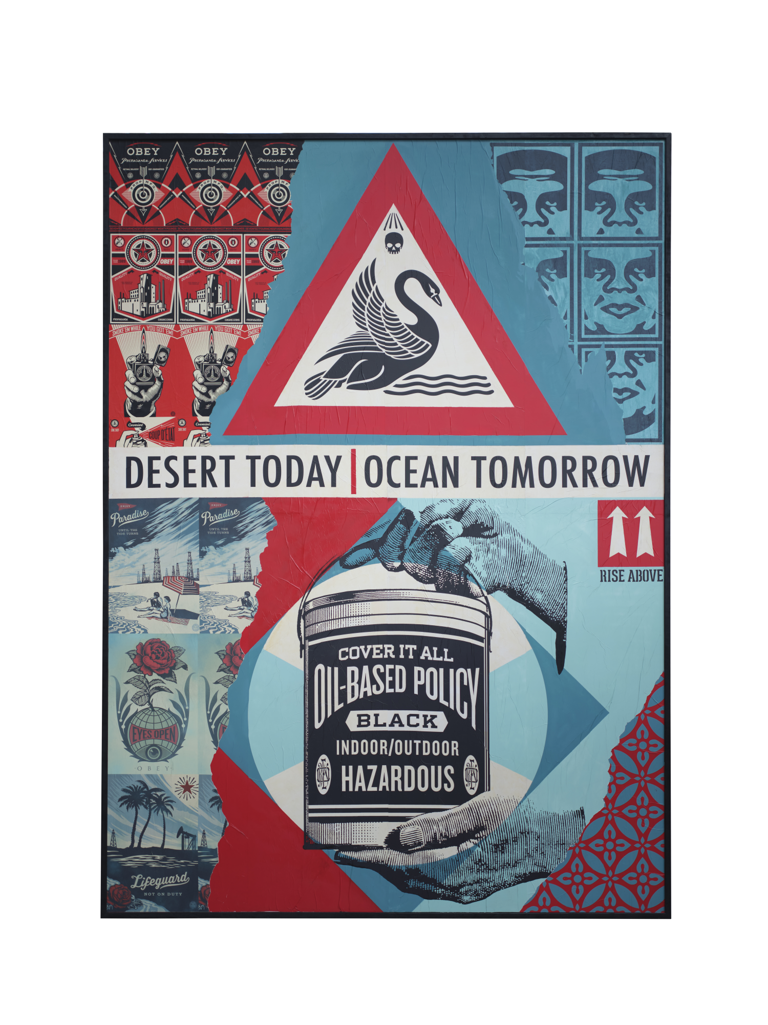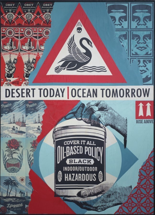 For his work at STRAAT, Shepard Fairey revisited the times when he was pasting up the streets. In Desert today ocean tomorrow, we can spot various elements from the '90s, including his Andre the Giant has a Posse sticker and vibrant explorations related to environmental artivism.