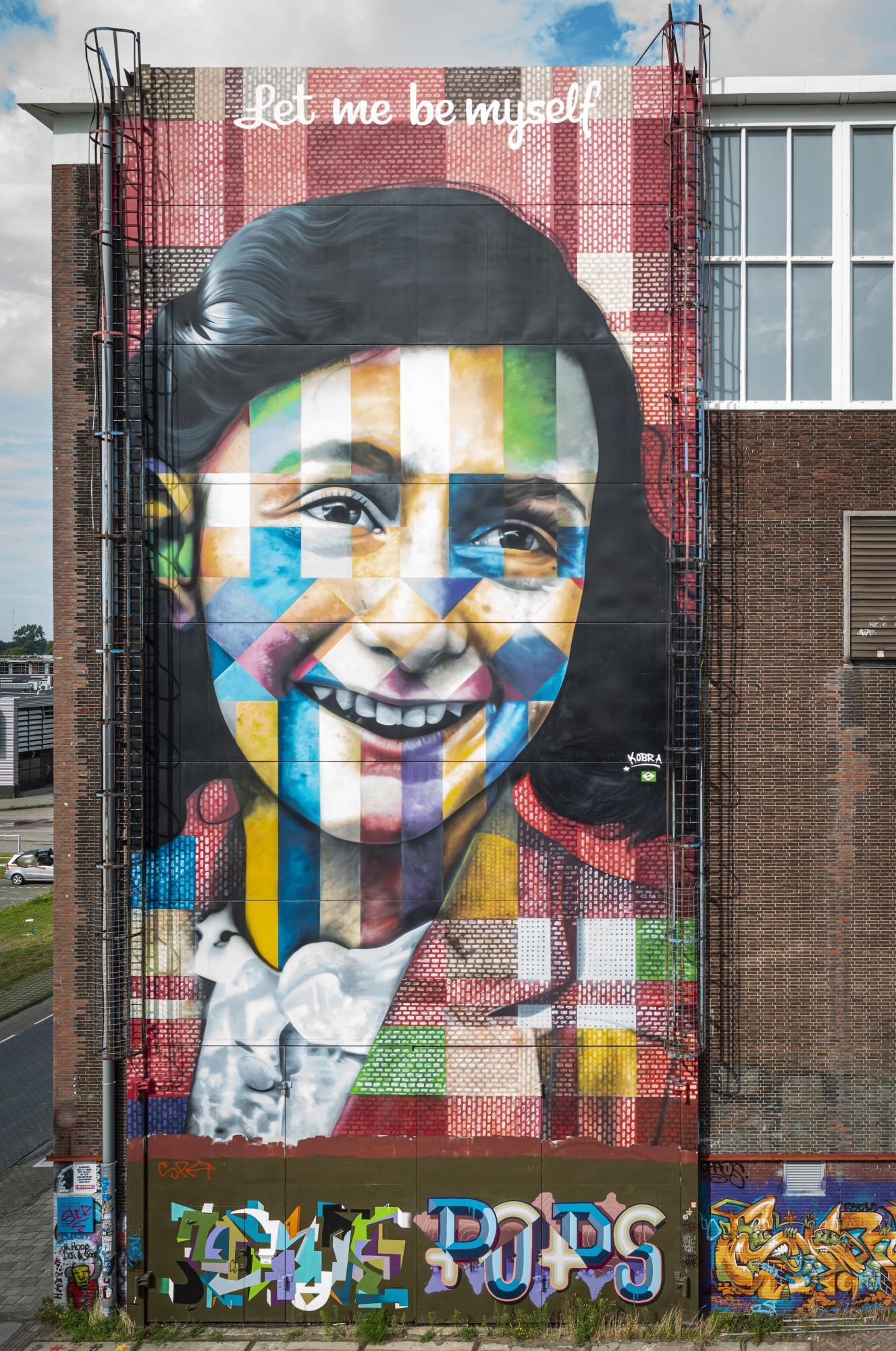 The internationally renowned artist Eduardo Kobra, known for painting the world’s largest street art mural in Rio de Janeiro, is responsible for the 240 m² Anne Frank mural on the NDSM wharf. It was his long-cherished wish to paint an Anne Frank portrait, and Amsterdam is and always will be the ideal place for this.