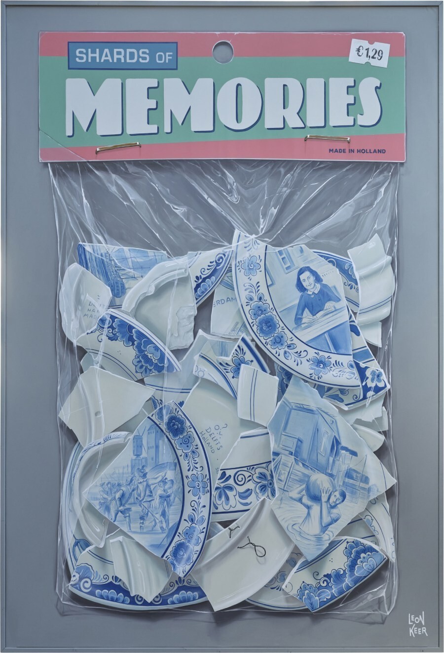 “The events of the past remain like shards in the present. We would rather not be reminded of past adversities, but we should certainly cherish them to learn from them and reflect on them to make the right choices for building nicer memories in the future. The shards are gathered in a transparent plastic bag to make the memories visible and preserve them.” Leon Keer