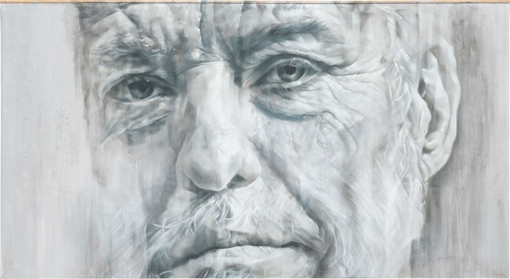 In Untitled, Guido portrays Peter Hoogewerf, who as the STRAAT owner is a central figure in the history of this museum. For this portrait, Guido used roughly applied local sand on the background to resemble a concrete wall, the most common surface for his creations