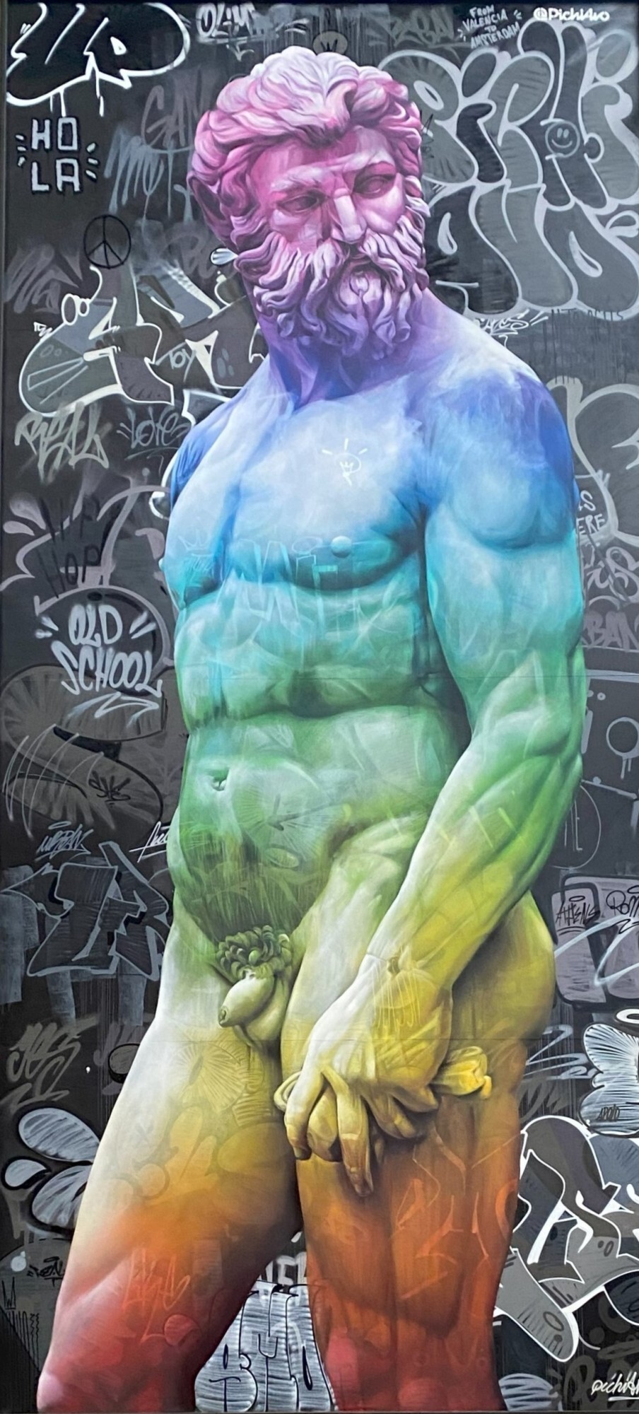 PichiAvo’s work blends classical iconography with contemporary street art, merging Greco-Roman mythology and sculpture with graffiti aesthetics. This fusion challenges traditional boundaries between high art and popular culture, creating a dialogue between past and present. By reinterpreting classical themes they make mythology accessible to a broader and more diverse audience.