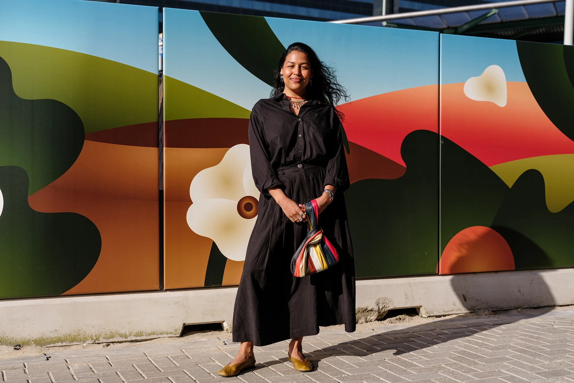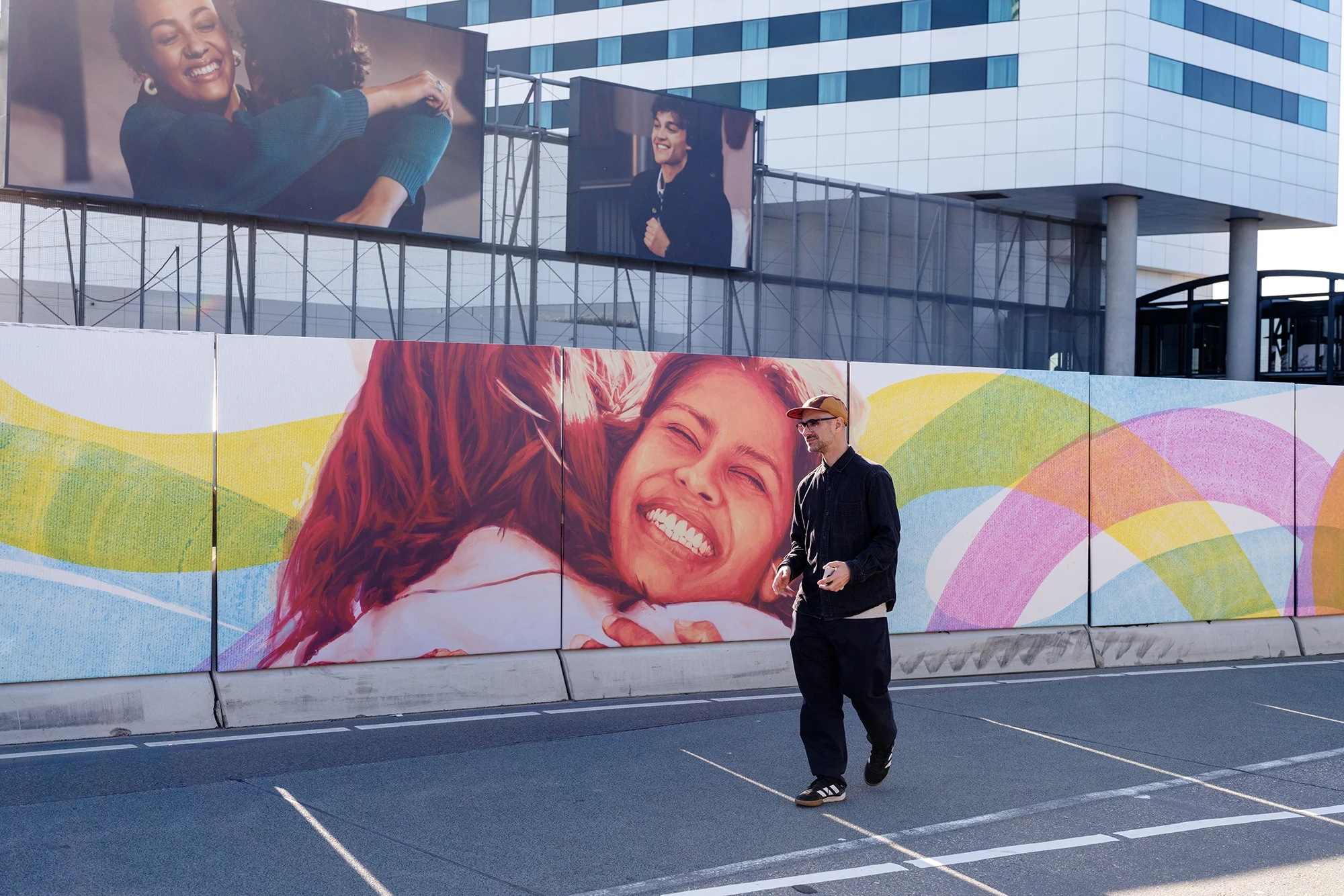 āMijn ontwerp roept beweging op en brengt dierbare herinneringen terug voor luchthavenbezoekers. Kruisende lijnen in levendige kleuren en expressieve figuren vormen een dynamische compositie die reizigers uitnodigt om even stil te staan, te reflecteren en opnieuw verbinding te maken met betekenisvolle momenten, voorbij de drukte van het reizen.ā